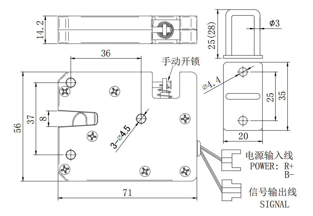3. 工作方式:關門上鎖斷電,開門開鎖通電。
