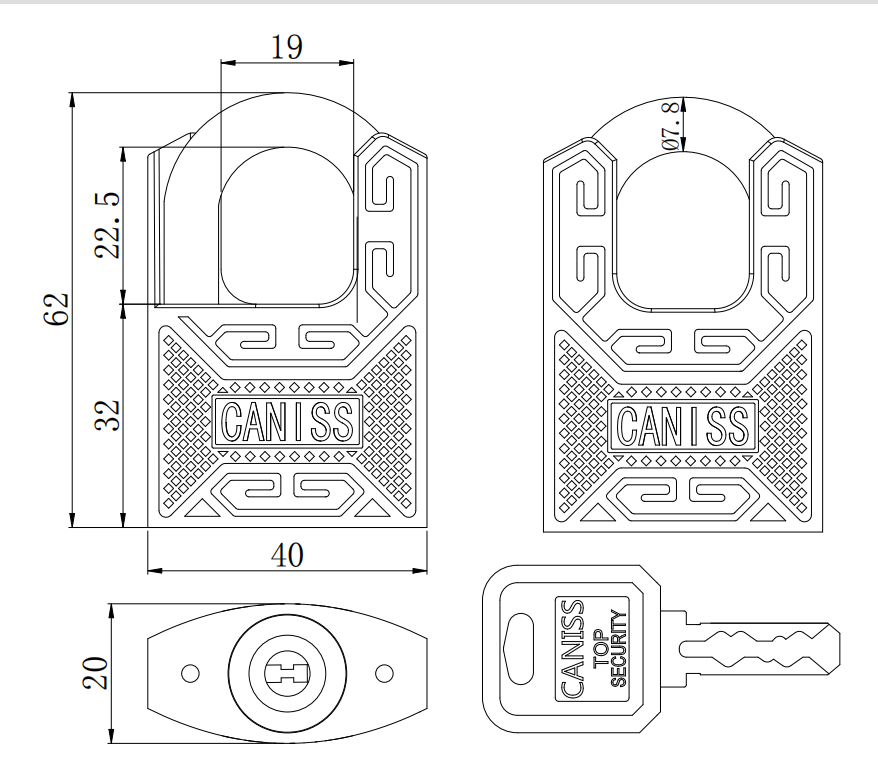 材質:鋅合金鎖體、鎖芯。加硬鎖鉤,護鉤鎖體。