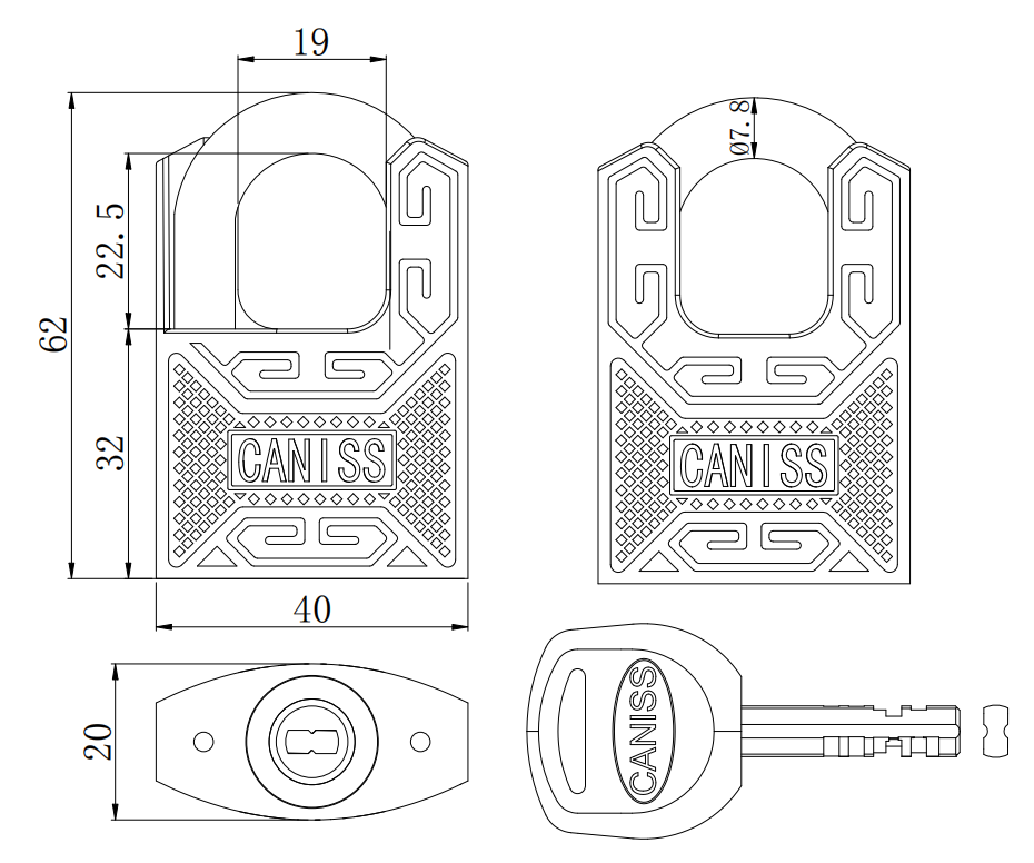 材質(zhì):鋅合金鎖體、鎖芯。加硬鎖鉤,護(hù)鉤鎖體。