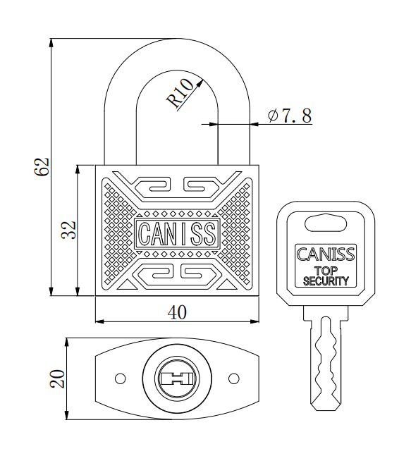 材質(zhì):鋅合金鎖體、鎖芯。加硬鎖鉤。