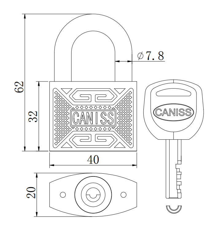 材質(zhì):鋅合金鎖體、鎖芯。加硬鎖鉤。