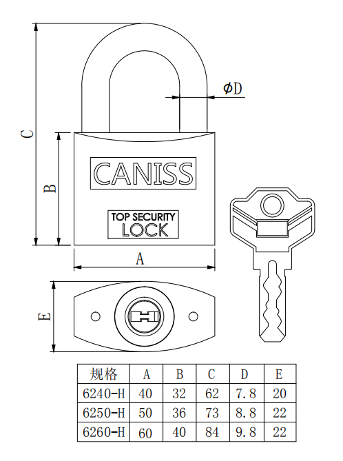 材質:鋅合金鎖體、鎖芯。加硬鎖鉤。