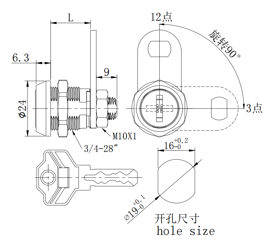 1.Key turn to 90dx or 180dx,pull out on 12 O’clock.